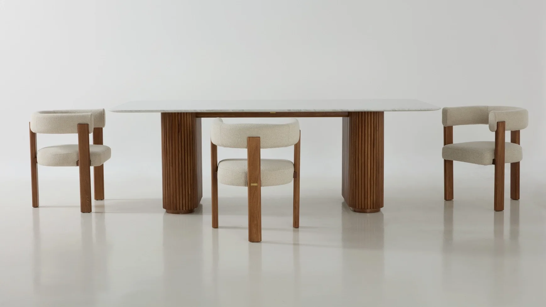 Sus líneas suaves y elegantes, junto con los detalles acanalados en la madera, la convierten en una obra de arte funcional y sofisticada. Cada curva refleja la calidad y la artesanía de esta pieza, invitándote a ser parte de la creación de tu espacio.