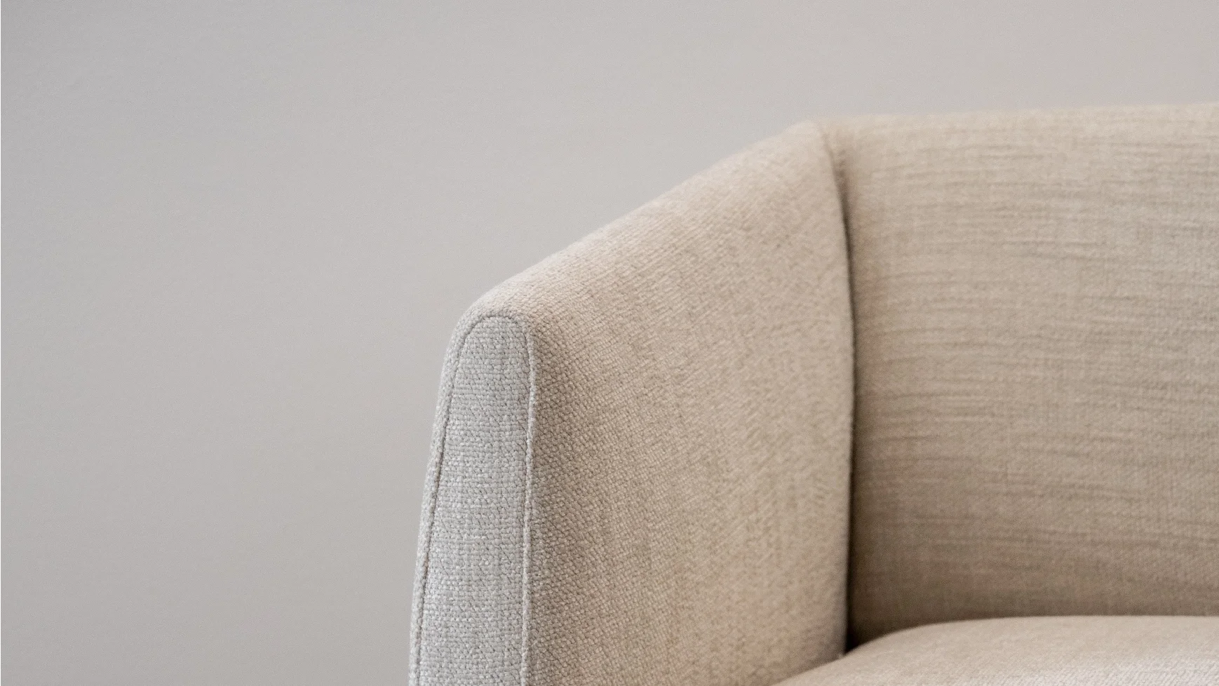 Sofá con líneas curvas y diseño cómodo que invita a relajarse. Tapizado en tela que mezcla elegancia y suavidad. Su forma natural lo hace especial y duradero.