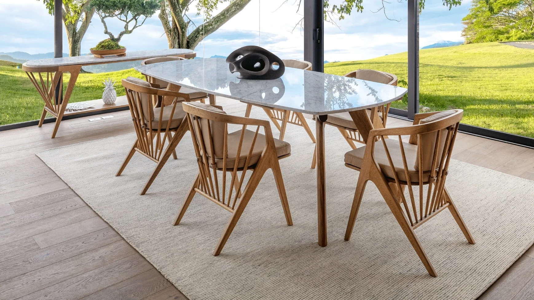 Diseñada por Mario Trimarchi, esta colección para exteriores es una invitación a contemplar el tiempo sin prisa, a dejarse llevar por la armonía de las formas orgánicas, los gestos suaves y la calidez que solo los materiales verdaderos pueden ofrecer.